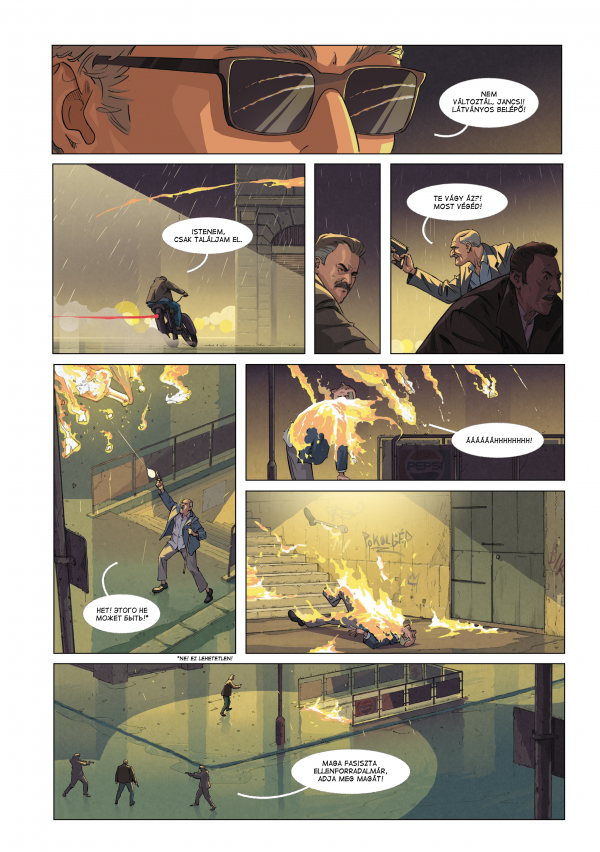 Futaki Attila: Azért gondoltam, hogy ezt a mintegy 60 oldalt – pontosan 54-et – kell megcélozni, mert nagyon sok olyan képregényt rajzoltam, amely szintén ilyen terjedelmű. Ennél az oldalszámnál ugyanis már ki lehet fejteni a történetet, ennyit minimum igényelt ez a téma.