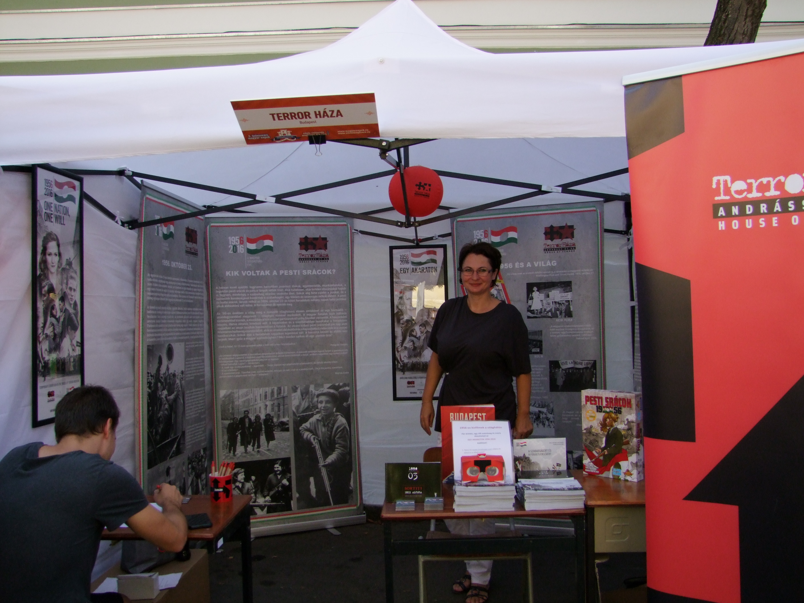 Sátrunkban és az előtte felállított mini tárlaton szó szerint életre kelt 1956 története. És ez nem csak az Egy akaraton 1956-2016 című, VR-szemüveggel és okostelefon segítségével nézhető kisfilmjeinknek és a Budapest Angyala című ’56-os képregényünknek volt köszönhető, hanem a látogatóinkból feltörő személyes emlékeknek is.