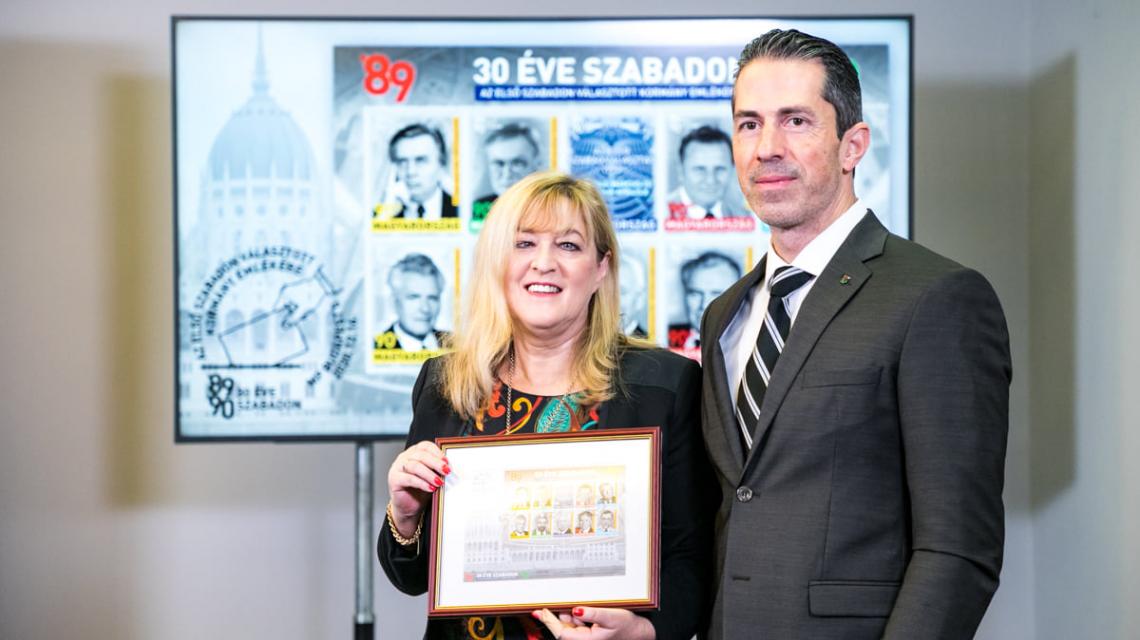 Magyarország kormánya az 1989-1990-es rendszerváltoztatás évfordulójára emlékévet hirdetett "30 éve szabadon" elnevezéssel. Az emlékévhez kapcsolódóan a Közép- és Kelet-európai Történelem és Társadalom Kutatásáért Közalapítvány együttműködést kezdeményezett a Magyar Postával, melynek eredményeképpen egy éve a rendszerváltoztatás folyamatában jelentős szerepet vállaló személyiségeket ábrázoló kisbélyeg ívet bocsátottak ki - idézte fel az újabb bélyegsorozat szerdai ünnepélyes, online bemutatásán Tallai Gábor, a Terror Háza Múzeum programigazgatója.