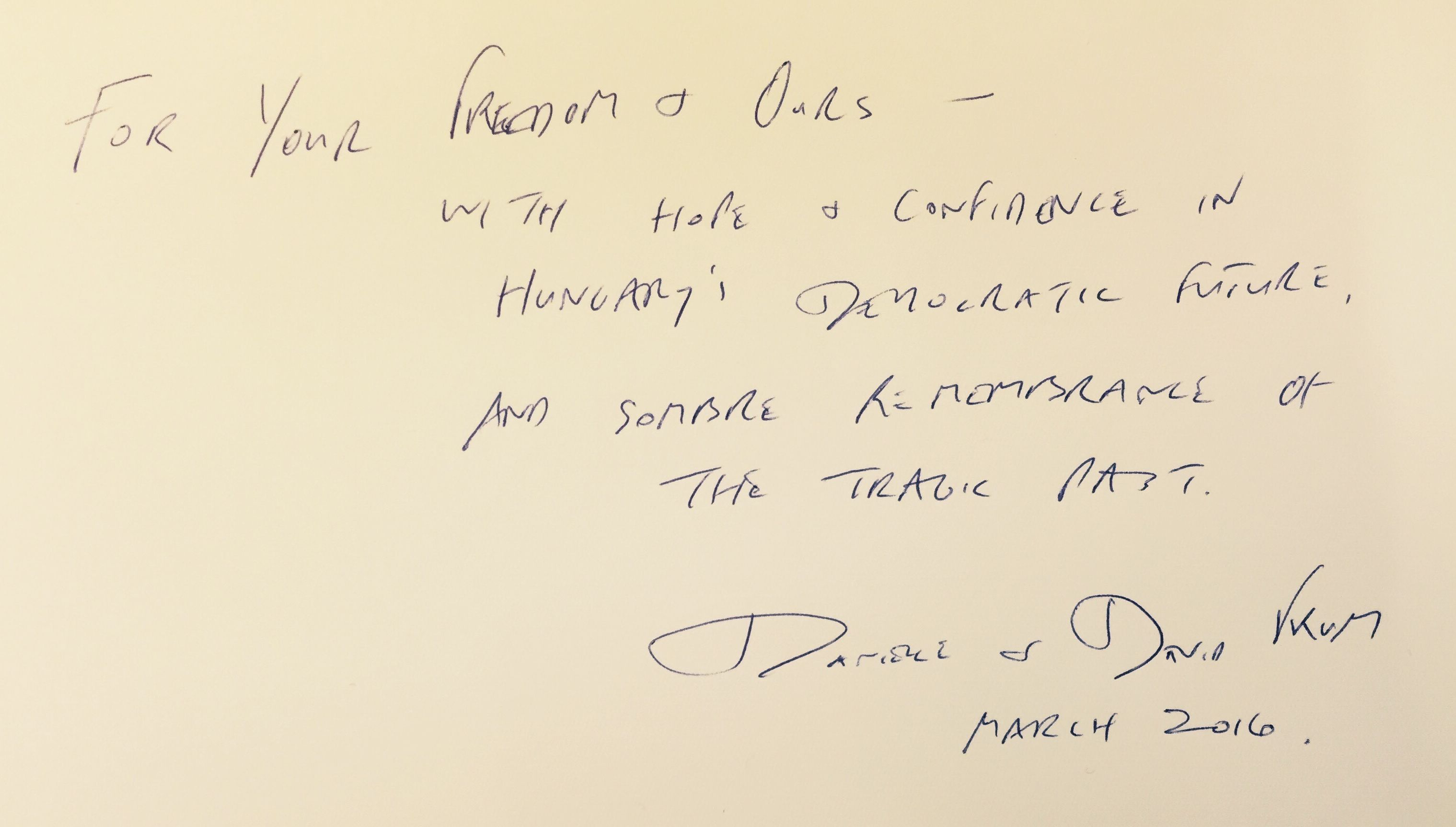 „A Ti szabadságotokért és a miénkért – Reménységgel és bizalommal Magyarország demokratikus jövőjében és a tragikus múlt komor emlékével.