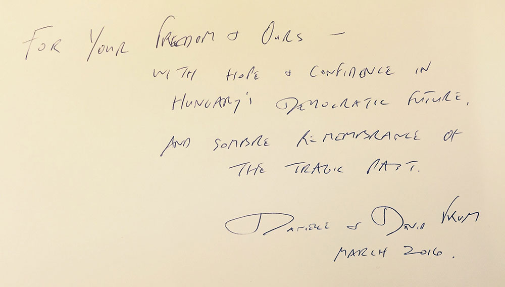 With Hope and Confidence in Hungary’s Democratic Future and the Sombre Remembrance of the Tragic Past.