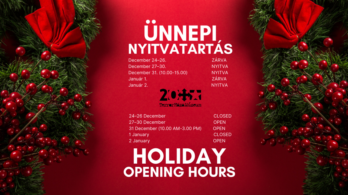 The House of Terror Museum will be open according to the following opening hours during the festive season: