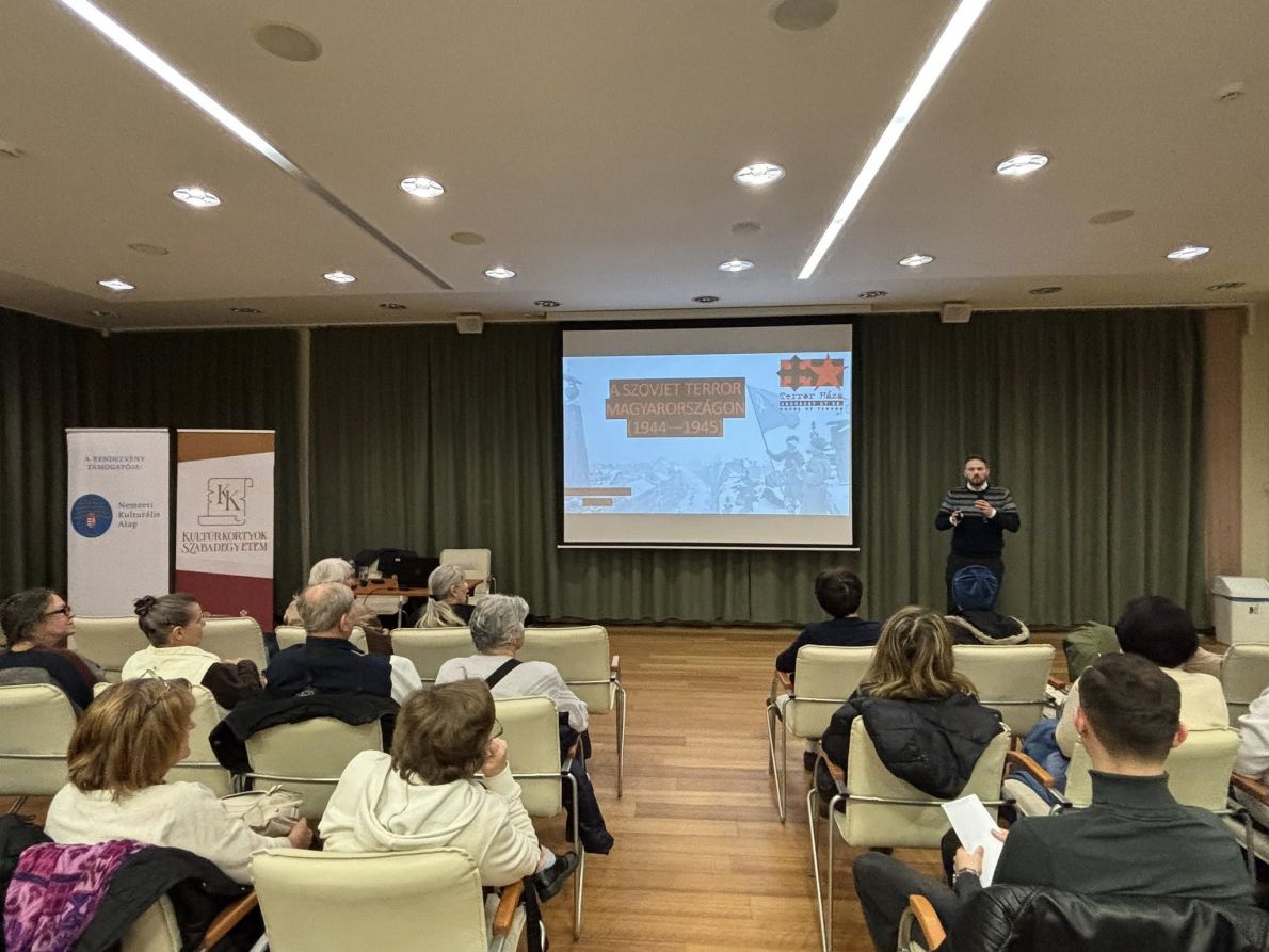 Szovjet terror Magyarországon 1944–1945 címmel tartott előadást, a kommunizmus áldozatainak emléknapja alkalmából, a Kultúrkortyok Szabadegyetem keretében.