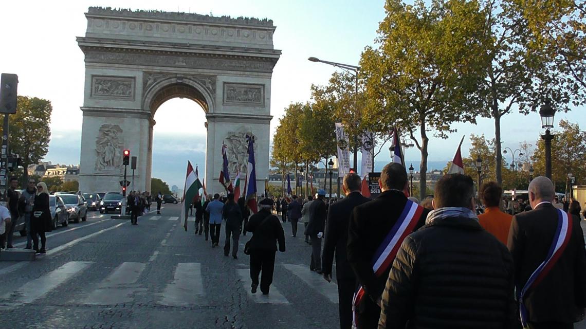 Az 1956-os Magyar Forradalom Francia–Magyar Emlékbizottsága más francia szervezetekkel közösen 1957 óta minden évben megemlékezik a forradalom hőseiről a párizsi Diadalívnél. Az idei ünnepség résztvevői a forgalom elől lezárt Champs-Elysées felső szakaszán érkeztek az ünnepség helyszínére, ahol a koszorúzást követően meggyújtották az öröklángot a magyar forradalom áldozatai, hősi halált halt mártírjai, és a megtorlásban kivégzettek tiszteletére.