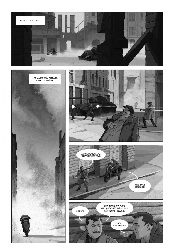 Tallai Gábor: Azért sem volt nehéz a munka, mert az elején egyértelművé vált, hogy ez nem tankönyv. Nem is akartuk, hogy az legyen. Ez egy akcióképregény, amilyen Magyarországon még nem született ’56 kapcsán.