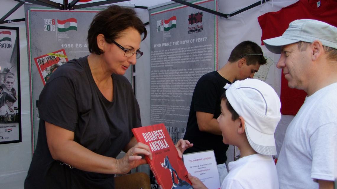 Sátrunkban és az előtte felállított mini tárlaton szó szerint életre kelt 1956 története. És ez nem csak az Egy akaraton 1956-2016 című, VR-szemüveggel és okostelefon segítségével nézhető kisfilmjeinknek és a Budapest Angyala című ’56-os képregényünknek volt köszönhető, hanem a látogatóinkból feltörő személyes emlékeknek is.