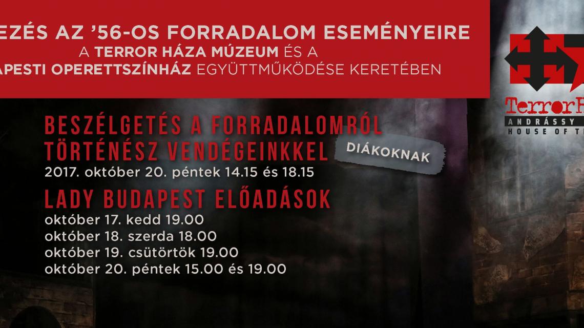 A megemlékezésen túl az együttműködés célja, hogy a két intézmény együtt, minél szélesebb közönséget szólítson meg a kezdeményezéssel. A közös jegyár konstrukció kialakítása mellett a partnerség legfontosabb eleme, hogy a Terror Háza Múzeum történészei az 1956-os ünnepi megemlékezés részeként több mint 250 diáknak tartanak háttérbeszélgetéseket október 20-án az ’56-os forradalom eseményeiről a Tábori György, Utazás című regénye alapján készült Lady Budapest előadások előtt.