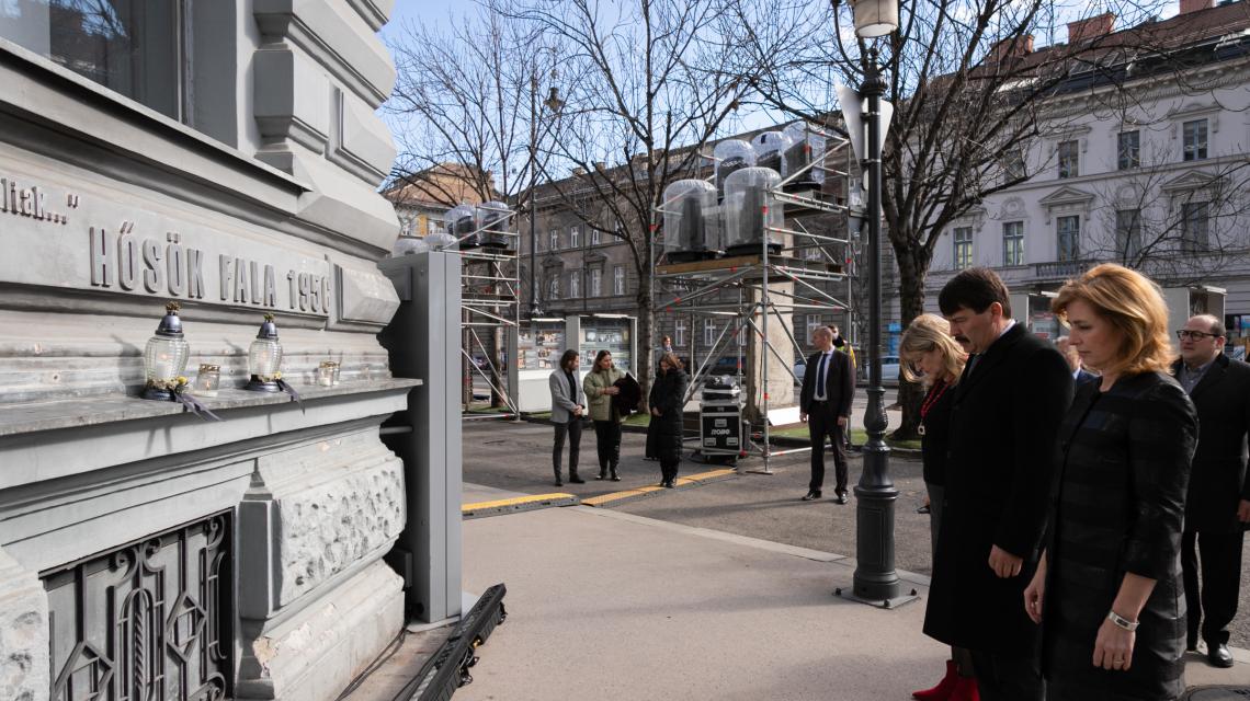 A köztársasági elnök látogatását követően mécsesgyújtással és főhajtással emlékezett a Hősök Falánál Kovács Zoltán, a Miniszterelnöki Kabinetiroda nemzetközi kommunikációért és kapcsolatokért felelős államtitkára is.