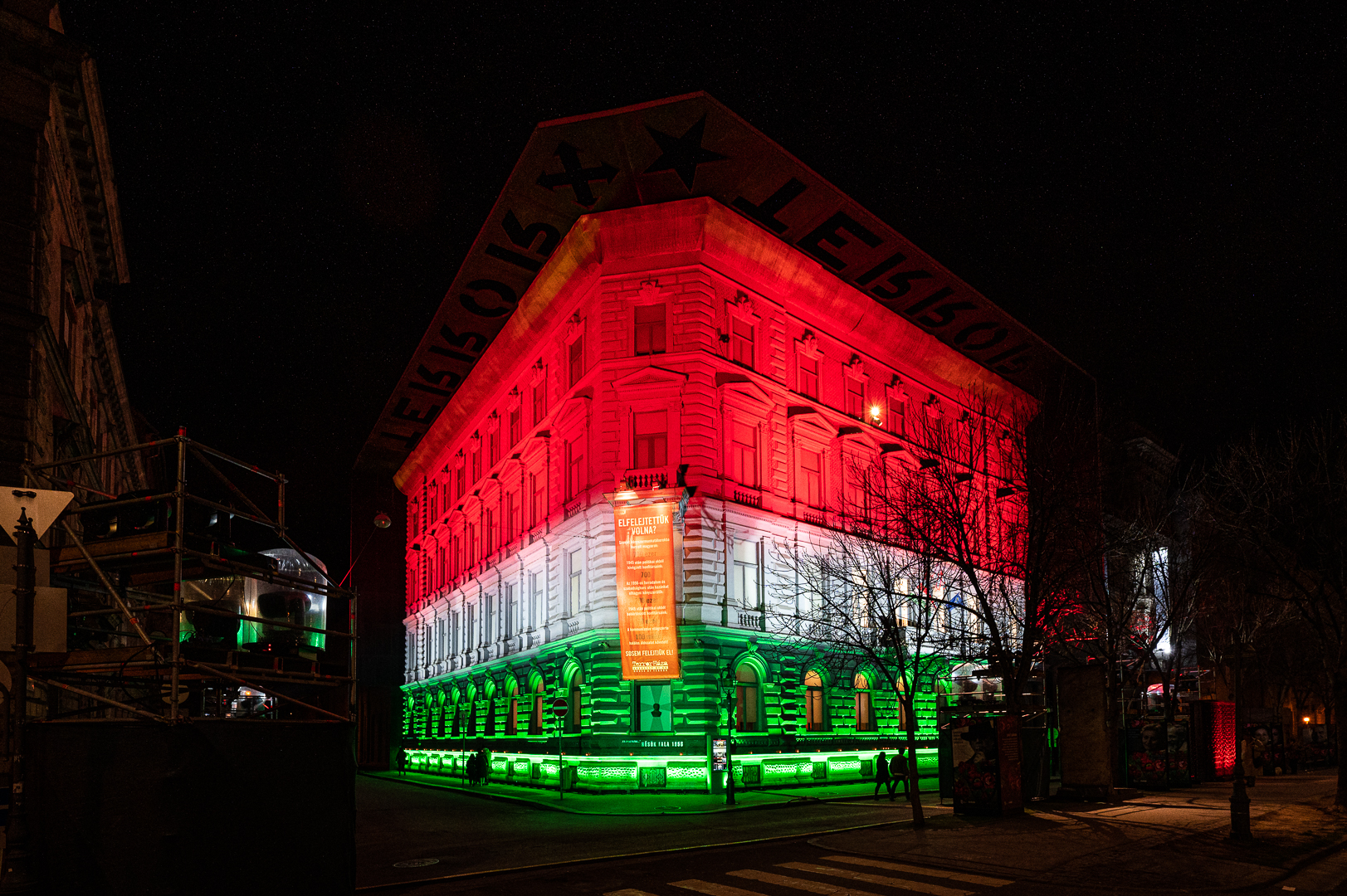 A megemlékezés fényfestéssel zárult. A Terror Háza Múzeum falaira a nemzeti színeket vetítették ki az esti órákban.
