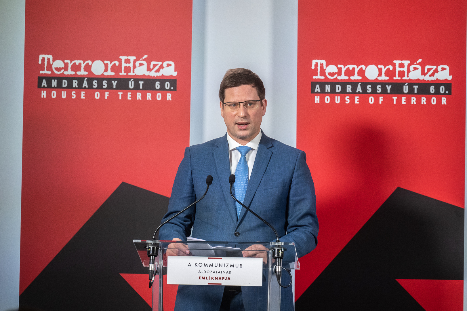 Felidézte, hogy 76 évvel ezelőtt a szovjet hatóságok mentelmi joga ellenére letartóztatták és a Szovjetunióba hurcolták Kovács Béla országgyűlési képviselőt, az akkori legnagyobb kormánypárt, a Független Kisgazda Párt főtitkárát. Kovács Béla elhurcolásával egyértelmű lett, olyan ideológia vetette meg a lábát Magyarországon, amelynek képviselői a háború időszakán kívül is a mindennapok részévé emelték a félelmet, a vérontást, az így élt időket pedig békének és felszabadulásnak nevezték - jelentette ki Gulyás Gergely.