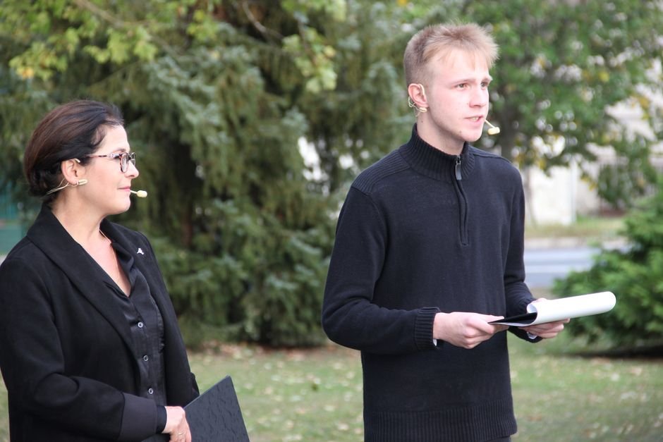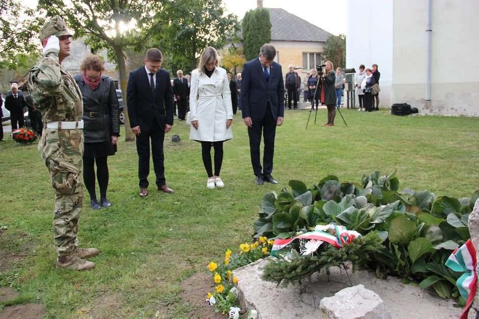 A megemlékezés ünnepi szentmisével vette kezdetét a Kistemplomban, majd az ’56-os emlékhelyen folytatódott, ahol Szakács Ildikó műsorvezető Faludy György „1956, te csillag” című versének részletével köszöntötte az egybegyűlteket.
