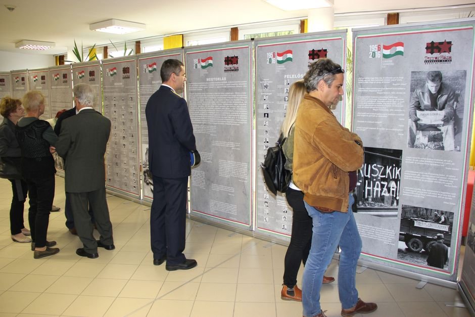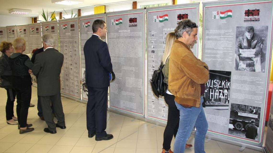 Az I. András térről Emlékezet-séta vezetett a Városházára, ahol Balogh Gábor, a Terror Háza Múzeum vezető történésze tartott történelmi előadásba ágyazott ünnepi beszédet, hivatalosan is megnyitva az emeleti aulában egy hónapig látható, az 1956-os forradalmat és szabadságharcot megidéző tárlatot.