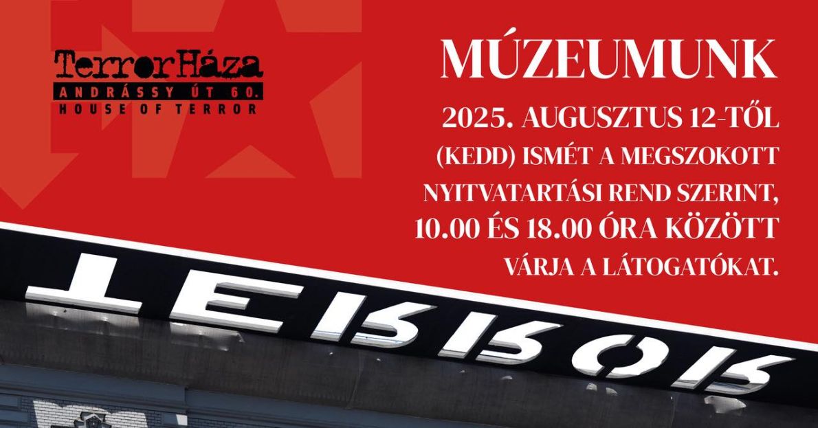 Múzeumunk 2025. augusztus 12-től (kedd) ismét a megszokott nyitvatartási rend szerint, 10.00 és 18.00 óra között várja a látogatókat.