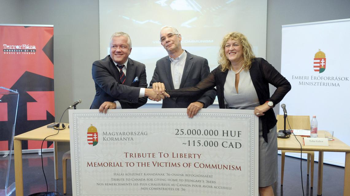 Schmidt Mária, a Terror Háza Múzeum főigazgatója beszédében Faludy Györgyöt idézte, akit az Andrássy út 60. épületében tartottak fogva, majd Kanadába emigrált. Kiemelte: a Terror Háza Múzeum célja, hogy a nácik kegyetlensége mellett a kommunizmus „igazi természetére” is rávilágítson. Schmidt Mária hozzátette: bízik benne, hogy a kanadai emlékmű nyomán a jövő nemzedékei is tudni fogják, hogy „milyen nagy dolog szabad és demokratikus országban élni”.
